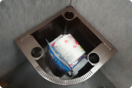 当社は、地震や停電でエレベータ内に人が閉じ込められた時のために、非常食や簡易トイレ等を備えたエレベーターキャビネットを設置しております。